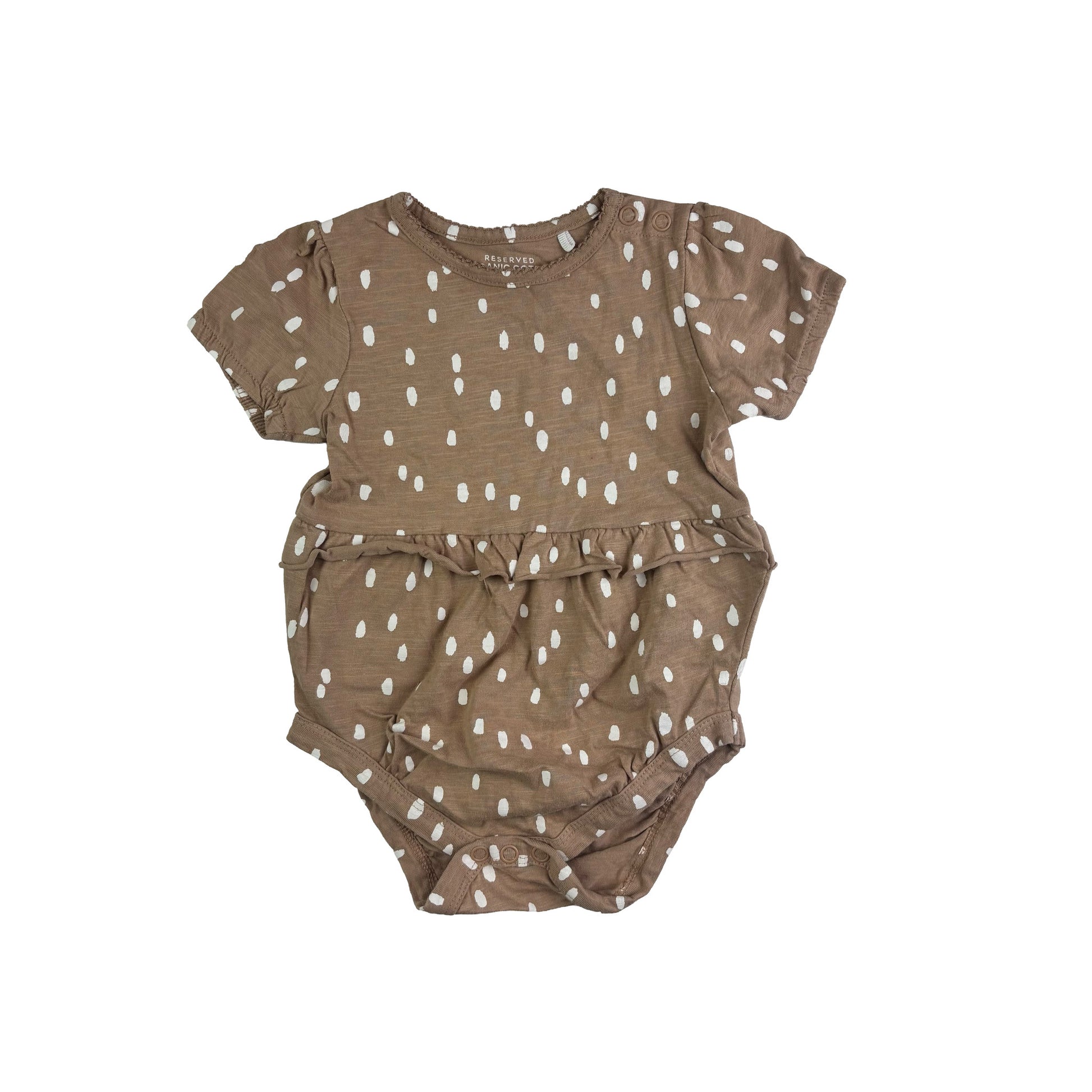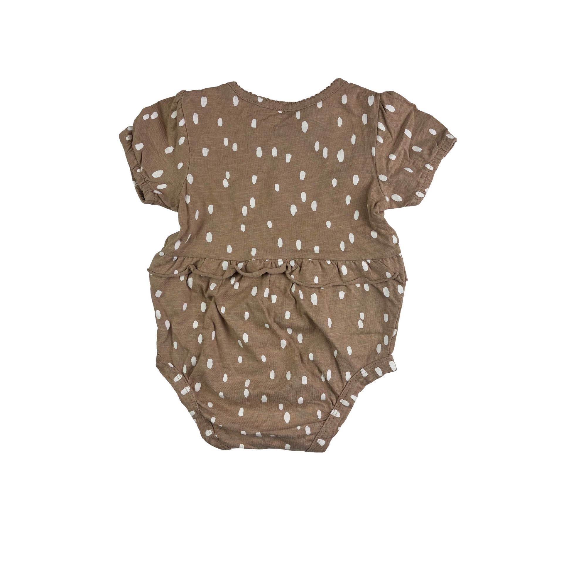 Der Body besticht durch ein süßes gepunktetes Muster, das sowohl für Jungen als auch für Mädchen geeignet ist. Die warmen Farben und das liebevolle Design machen ihn zu einem echten Hingucker in der Babygarderobe.