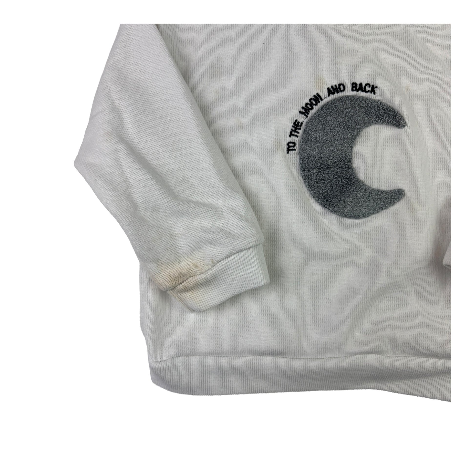 Bitte beachten Sie, dass der Pullover in einem ordentlichen Zustand ist, jedoch einige leichte Verschmutzungen aufweist, die sich mit einer Wäsche leicht beheben lassen. Diese kleinen Mängel mindern jedoch nicht die Qualität und den Charme dieses Kleidungsstücks. Schenken Sie Ihrem Kind diesen einzigartigen Pullover und lassen Sie es in stilvollem Komfort aufwachsen!