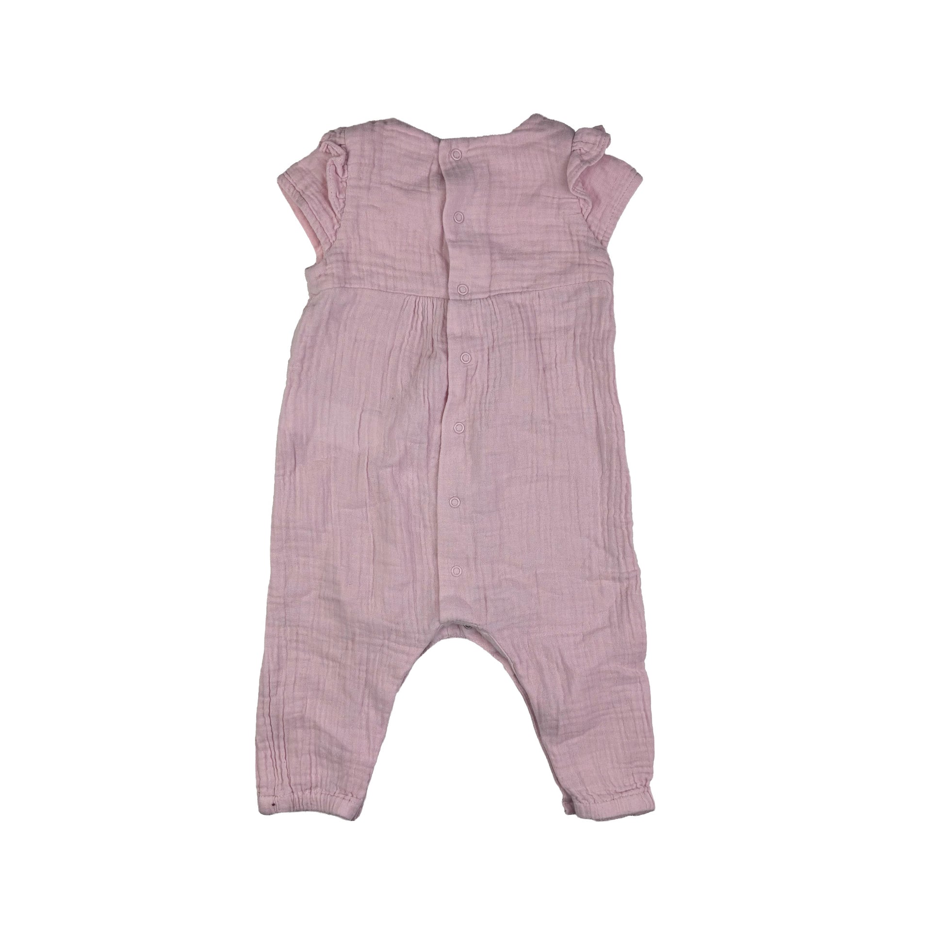 Der Strampler in einem sanften Farbton ist ideal für den Alltag und besondere Anlässe. Mit einem niedlichen Design und praktischen Druckknöpfen ist er leicht anzuziehen und auszuziehen.